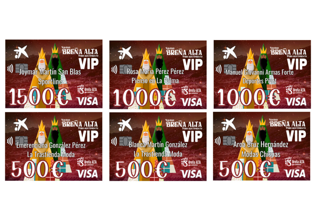 Durante el encendido de luces de Breña Alta tuvo lugar el sorteo de las 6 tarjetas vips , con un total de 783 registros y un importe por compras registradas de 47.481€.