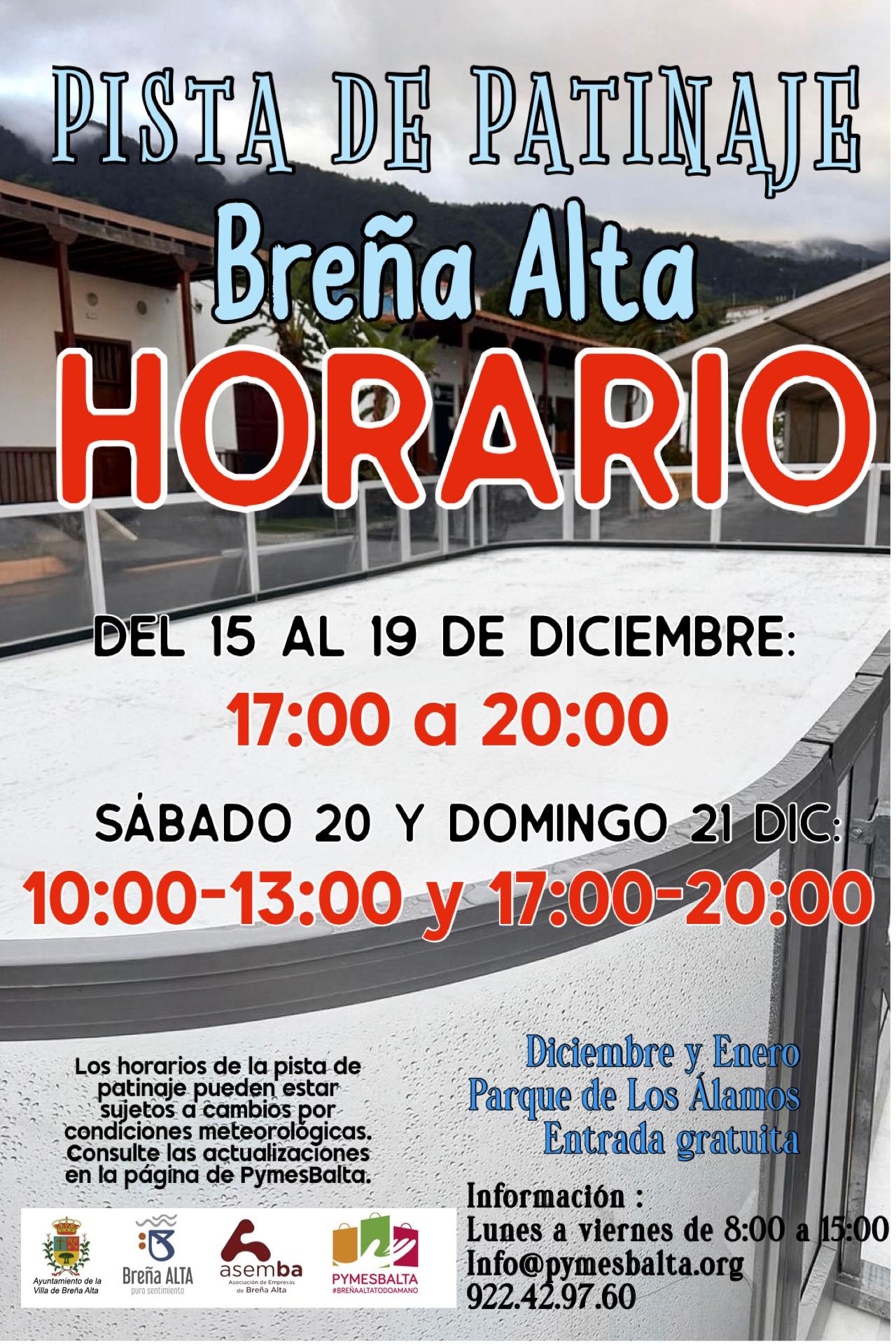 Horario pista patinaje Breña Alta del 15 al 21 de diciembre 2025