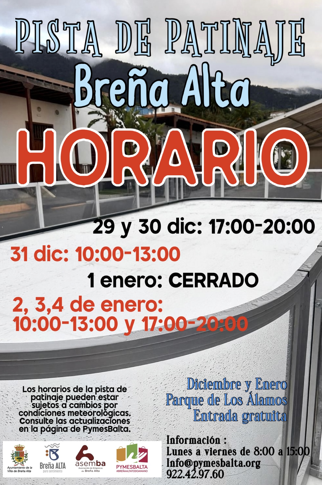 Horario pista patinaje Breña Alta del 29 de diciembre al 4 de enero 2026
