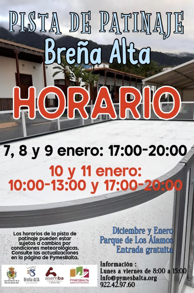 Breña Alta estas Navidades suma a su variado programa de actividades navideñas este año como novedad una pista de patinaje sobre hielo sintético, que se instalará en la Plaza de Los Álamos del 5 de diciembre de 2025 al 31 de enero de 2026. La gestión de esta actividad correrá a cargo de la Asociación de Empresarios Pymesbalta, a través de un convenio de colaboración con el Ayuntamiento de Breña Alta.