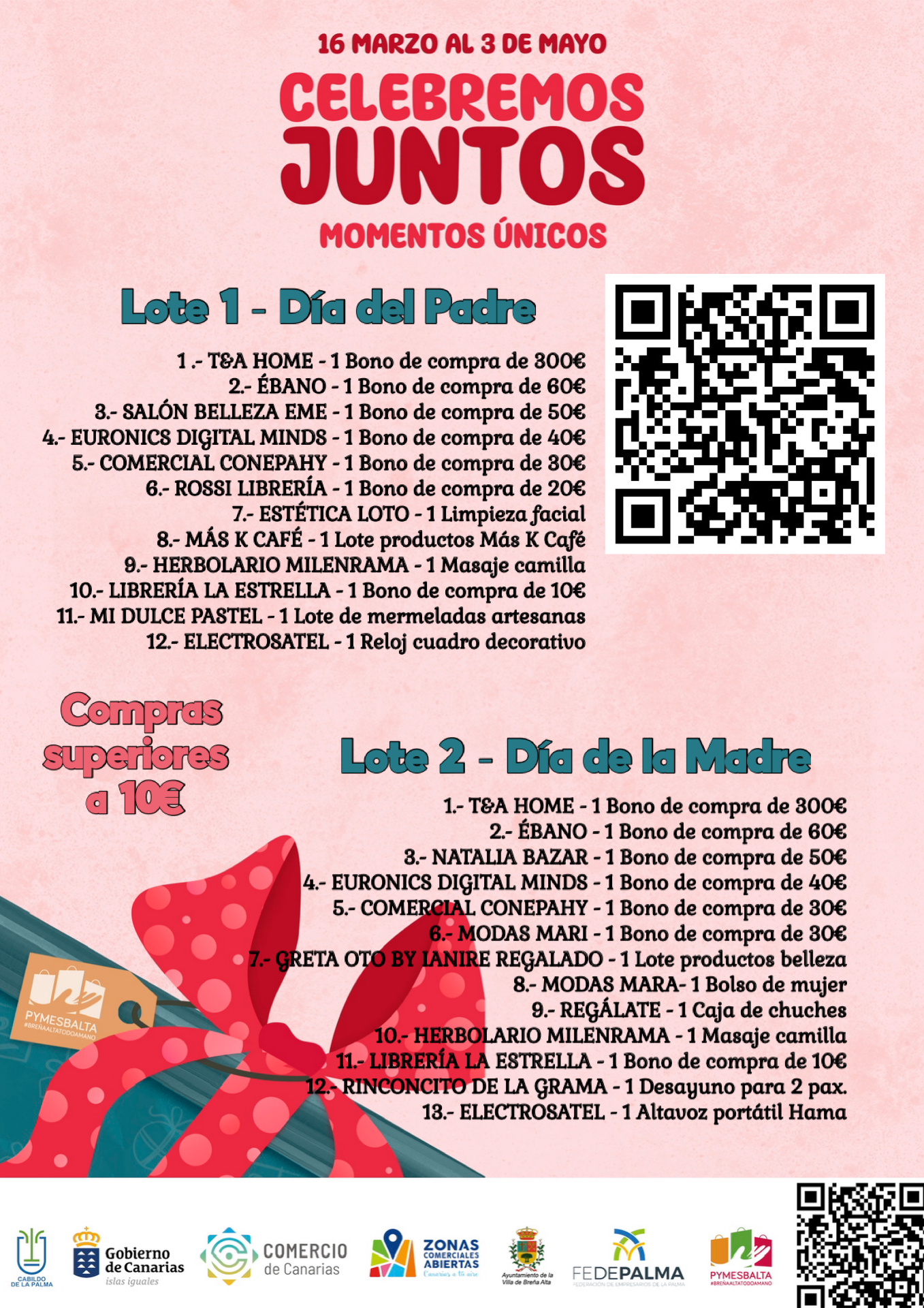 La Asociación de Empresarios PymesBalta pone en marcha la campaña comercial “Celebremos juntos momentos únicos”, una iniciativa que se desarrollará del 16 de marzo al 3 de mayo de 2026 con el objetivo de incentivar las compras en el comercio local de Breña Alta con motivo de la celebración del Día del Padre y del Día de la Madre.