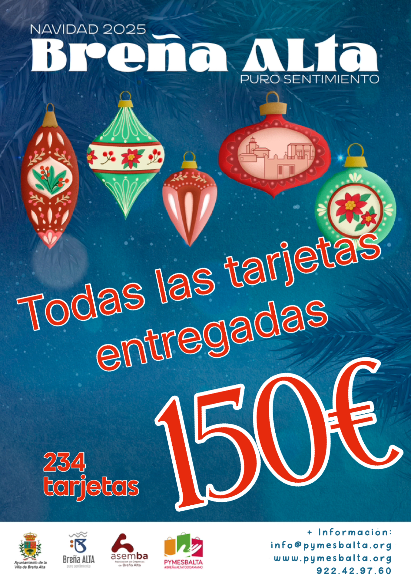 “Navidad Breña Alta · Puro Sentimiento”, una iniciativa puesta en marcha por el Ayuntamiento de Breña Alta con la gestión de Pymesbalta para fomentar las compras en el comercio local durante la campaña navideña.